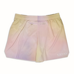 Designed for the rigours of the trail in an ultra-light quick drying fabric complete with two hand pockets, one internal stash pocket and one rear zip pocket. Laser cut raw hems are almost weightless and frictionless when moving. Purple Watercolour colour.