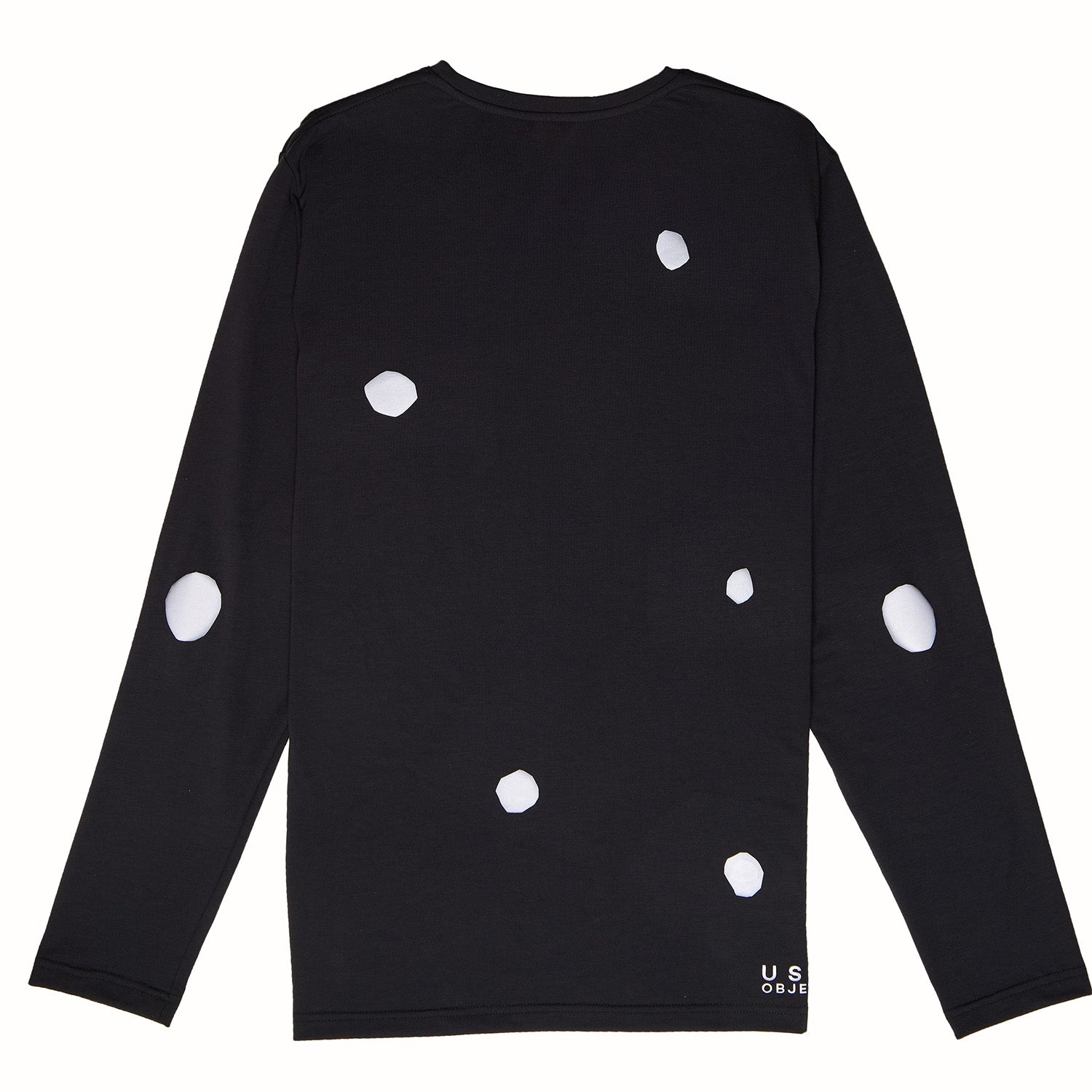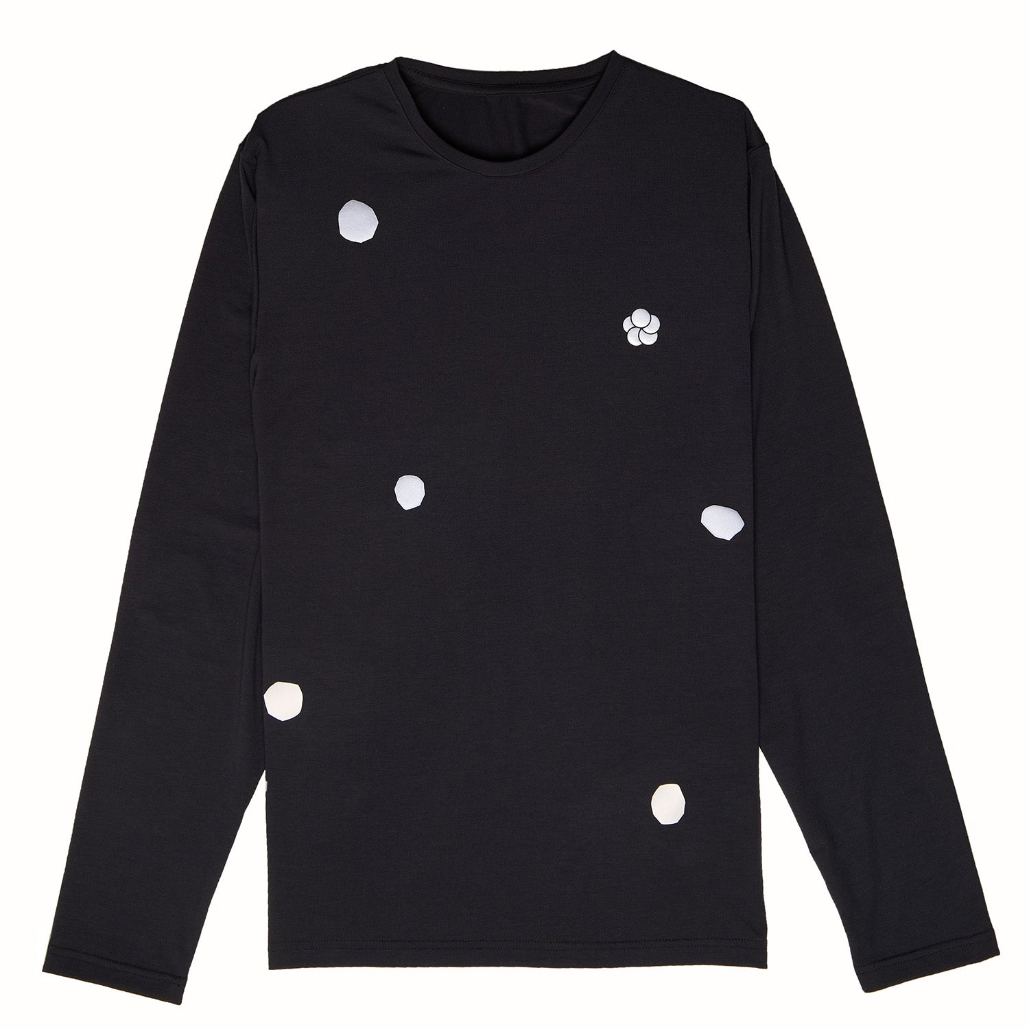Our Reflective Polka Dot Dri Release Tees are constructed from a super-soft cellulose blend made from responsibly sourced wood pulp and using Dri-Release technology, this t-shirt is soft to touch, incredibly lightweight and thermo-regulating - breathable, moisture wicking and fast drying. Slim fit design. Black long-sleeve with reflective polka dot.